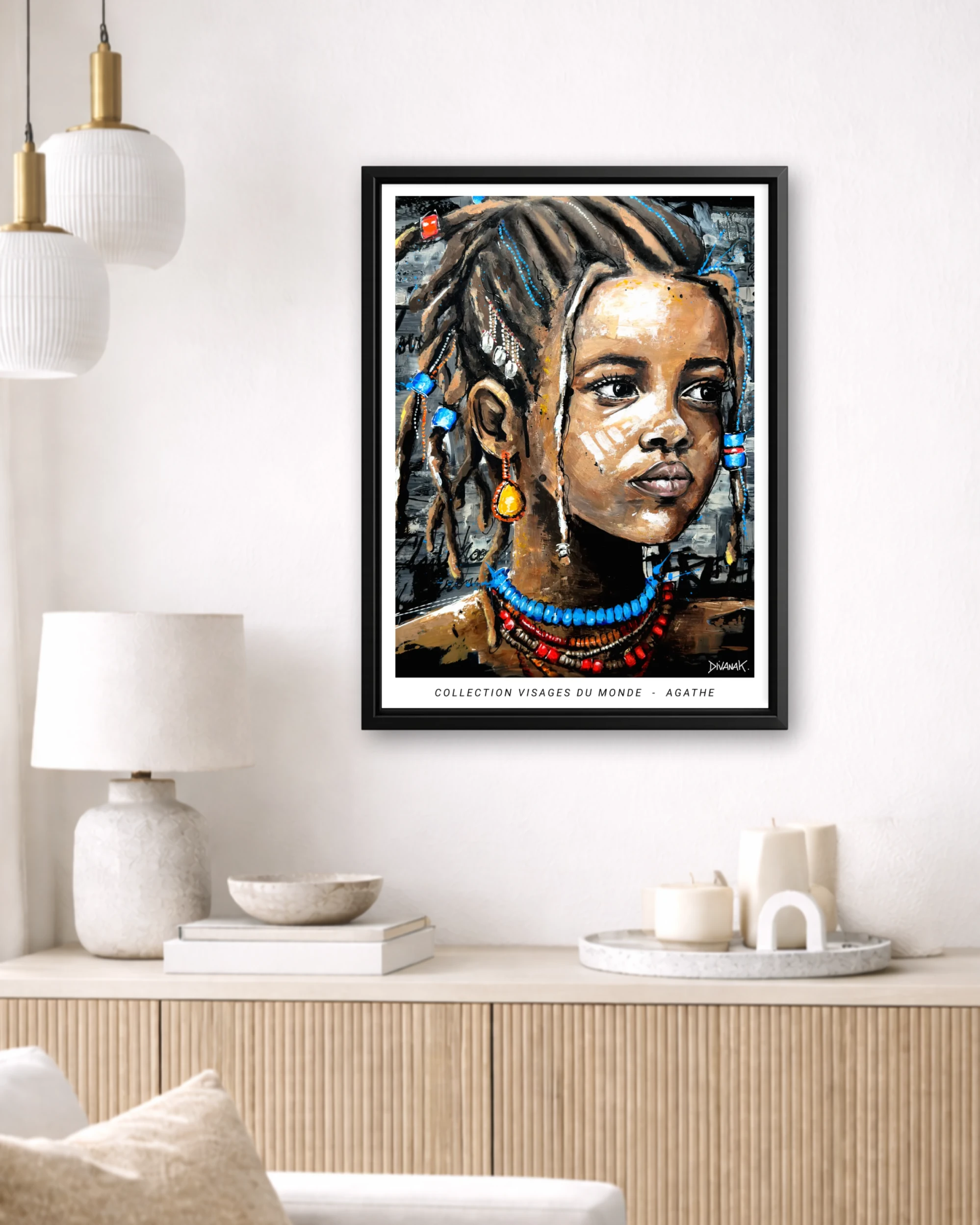 Cette affiche est issue de la collection « Visages du Monde », une série inspirée de rencontres réelles ou imaginées.