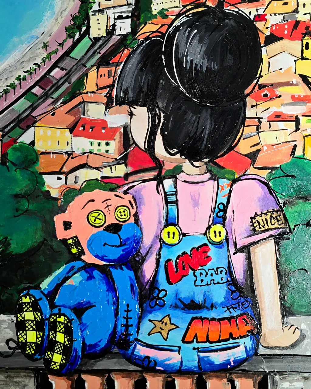 Peinture originale née d’un instant suspendu face à Nice, entre tendresse et contemplation.