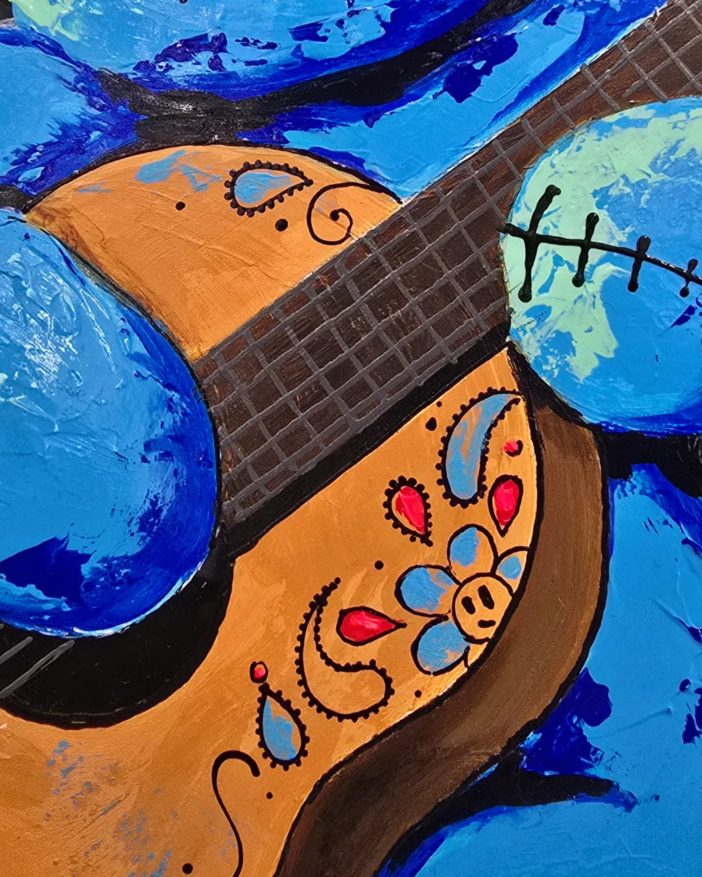 Peinture originale de Babatchou, laissant parler son coeur à travers la musique.